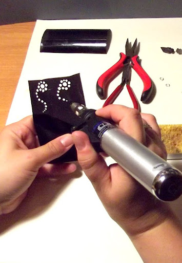 Narzędzie musi się rozgrzać na tyle by końcówka roztopiła plastik. Arkusz jest dużo większy niż potrzebuje