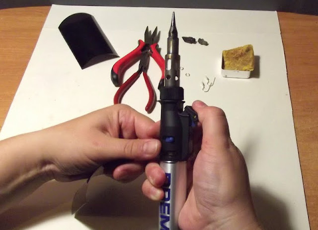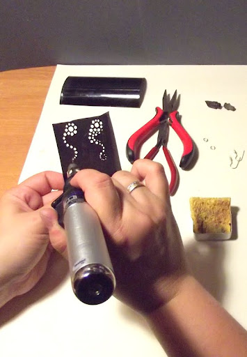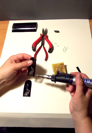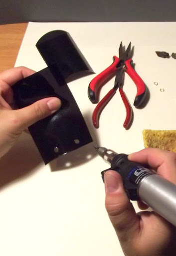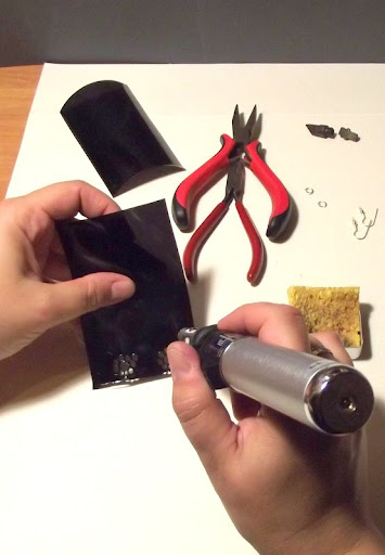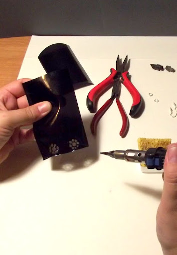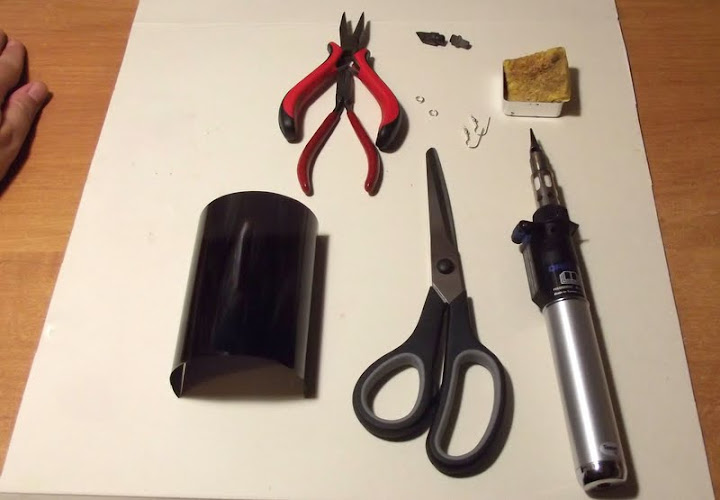Potrzebne będą: arkusz plastiku z butelki typu PET, narzędzie Dremel Versa Tip, nożyczki, szczypczyk