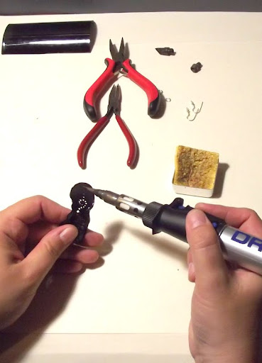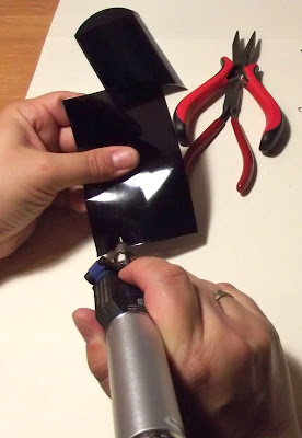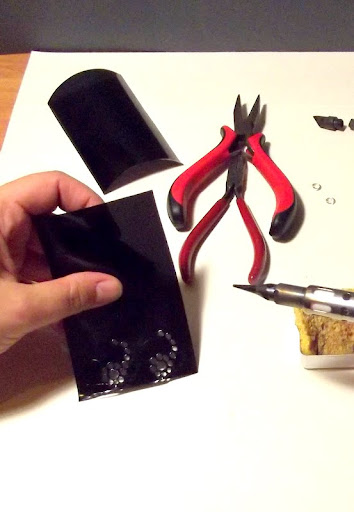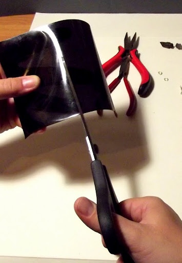 Potrzebne będą: arkusz plastiku z butelki typu PET, narzędzie Dremel Versa Tip, nożyczki, szczypczyk