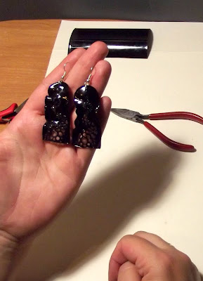Gotowe kolczyki są bardzo lekkie i wglądają niezwykle oryginalni e. Wzór można modyfikowa ć, zmieniać kształt końcówki do wypalania i kolor plastiku. Zatem do dzieła :)!!