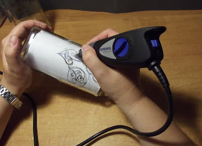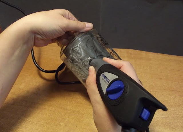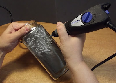 szklany słoik (ja użyłam słoika po kawie),narzędzie do grawerowan