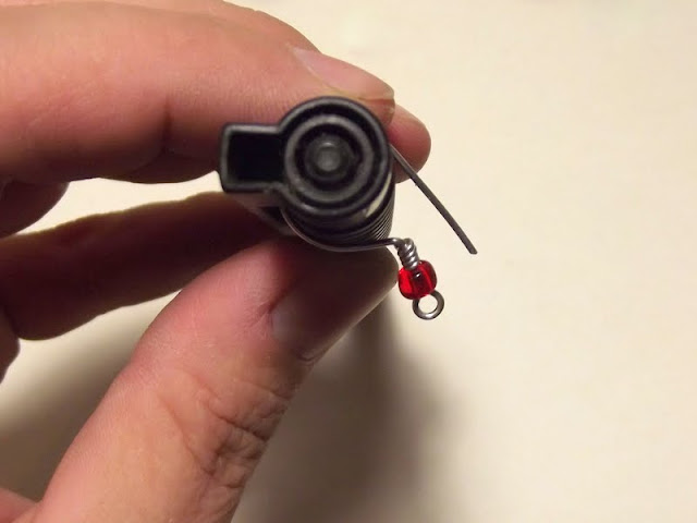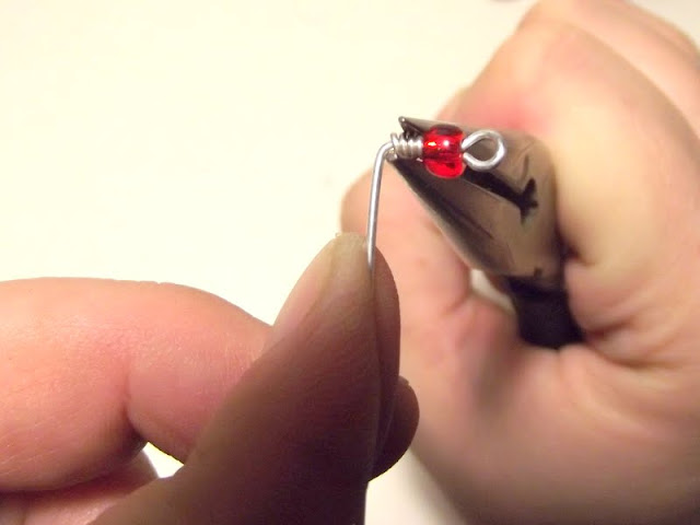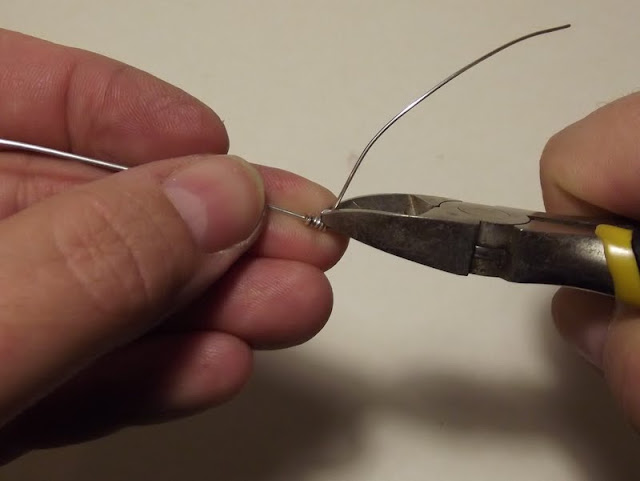 Oczko ładnie się zamknie ponieważ wyszlifowa łyśmy końce drucika. Teraz łapiemy za owijkę i zaginamy do dołu drugi koniec drucika.